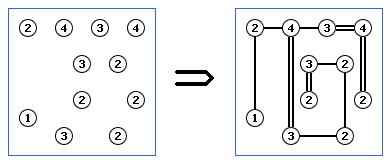 The rules are simple. Hashi is played on a rectangular grid with no standard size. Some cells start out with numbers from 1 to 8 inclusive; these are the islands. The rest of the cells are empty. The goal is to connect all of the islands into a single connected group by drawing a series of bridges between the islands. The bridges must follow certain criteria: They must begin and end at distinct islands, travelling a straight line in between; They must not cross any other bridges or islands; They may only run orthogonally; At most two bridges connect a pair of islands; and The number of bridges connected to each island must match the number on that island.